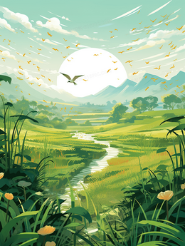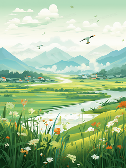 唯美绿色植物清明节气风景插画