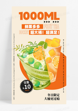 简约1000毫升鲜果多多餐饮促销手机海报常规