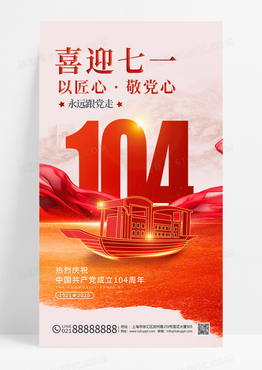 红色喜迎七一104周年建党节海报