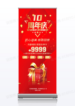 红色简约10周年庆典医美周年庆展架易拉宝设计