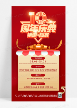 红色大气10周年店庆来袭促销活动手机海报10周年店庆手机海报