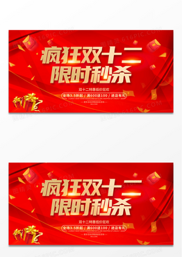 简约红色双12双十二年终盛典双12狂欢季双12展板