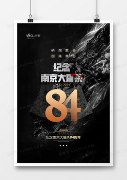 黑色缅怀逝者纪念南京大屠杀84周年海报