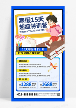 蓝色卡通寒假15天特训营集训学习打卡手机宣传海报
