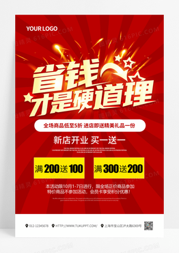 红金立体省钱才是硬道理限时特惠促销宣传海报