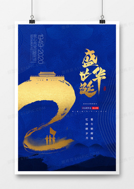 蓝色大气质感国庆节71周年纪念盛世华诞宣传海报