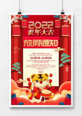 2022虎年插画风老虎骑锦鲤喜庆素材
