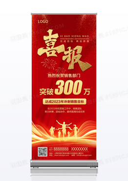 2023红色简约金色手写字年终战绩总结销售喜报展架易拉宝