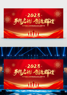 红色大气2023兔年年会舞台背景梦想起航创造辉煌公司表彰大会背景