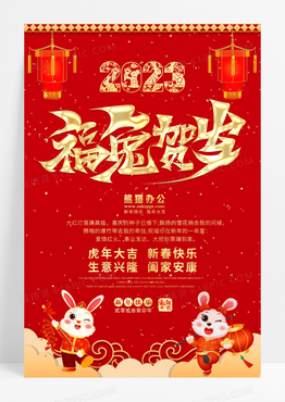 烫金效果兔年拿着福字剪纸传统习俗窗花素材