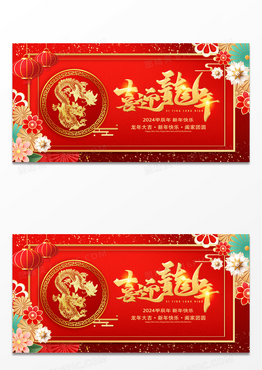 国潮中国风玉兔贺春舞狮新年免抠边框元素