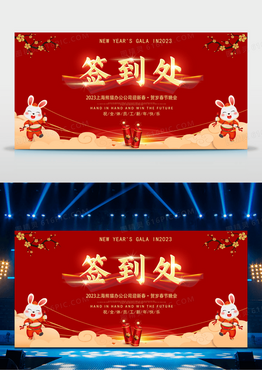 卡通国潮风2023新年兔年手举牌套图合集素材