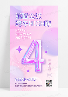 彩色流体弥散镭射全城跨年趴2024倒计时手机海报