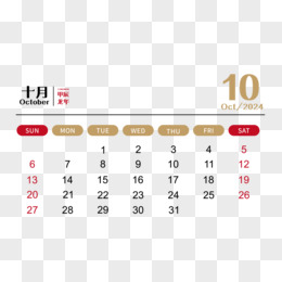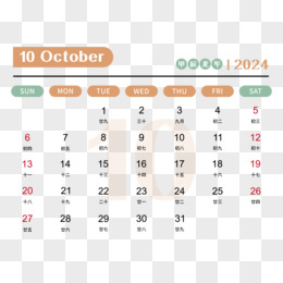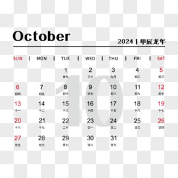 矢量新年2024年简约大气龙年日历10月日历