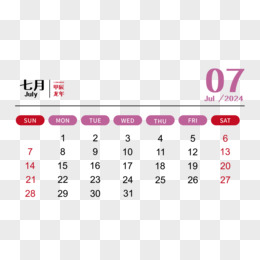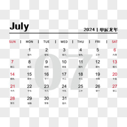 矢量新年2024年简约大气龙年日历7月日历
