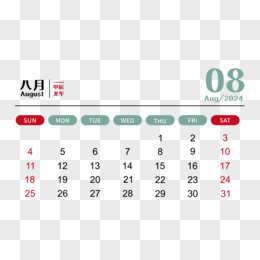 矢量新年2024龙年日历8月日历