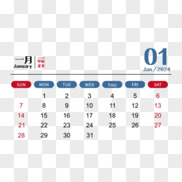 矢量新年2024年简约大气龙年日历1 月日历