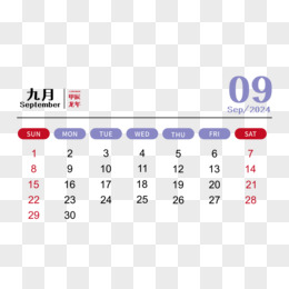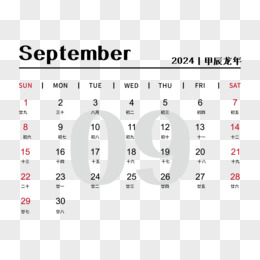 矢量新年2024年简约大气龙年日历9月日历