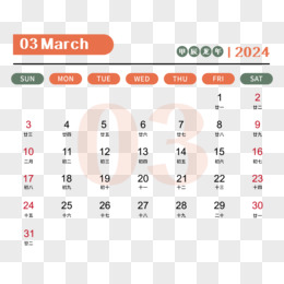 矢量新年2024龙年日历3月日历