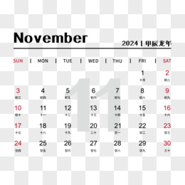 矢量新年2024龙年日历11月日历