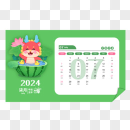 矢量新年2024龙年日历7月日历