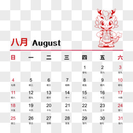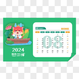 2024矢量龙年卡通剪纸8月日历