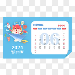 矢量新年2024龙年日历6月日历