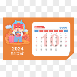 矢量新年2024龙年日历10月日历