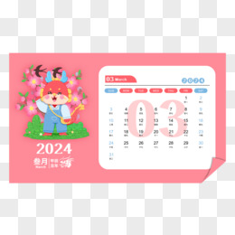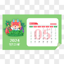 2024矢量龙年卡通剪纸3月日历