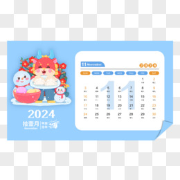 手绘龙年2024年可爱龙龙日历11月日历