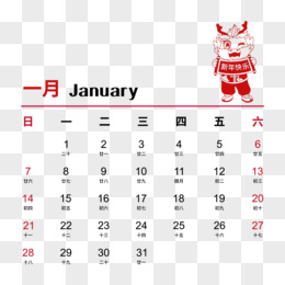 矢量新年2014年龙年彩色日历1月日历