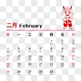 2024矢量龙年卡通剪纸2月日历