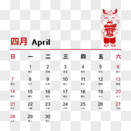 矢量新年2014年龙年彩色日历4月日历
