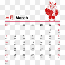 矢量新年2014年龙年彩色日历3月日历