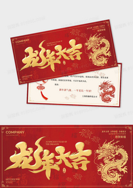 红色2024龙年新年贺卡元旦贺卡烫金书法字体龙年大吉