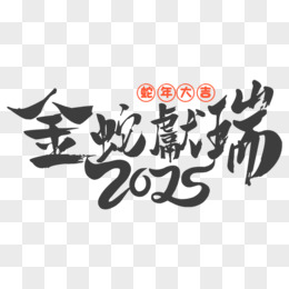 手绘蛇年2025字体蛇年大吉鎏金字体