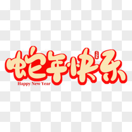 毛笔风蛇年字体设计蛇年贺新春金字红色描边