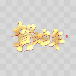 毛笔风蛇年字体设计蛇年贺新春金字红色描边