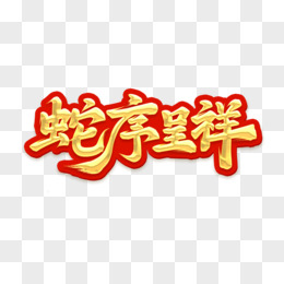 毛笔风蛇年字体设计祥蛇献瑞金字红色描边