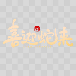 手写风喜迎蛇来成语毛笔字设计免抠元素三