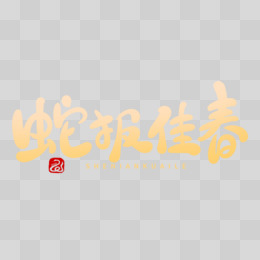 手写风蛇报佳春成语毛笔字设计免抠元素一