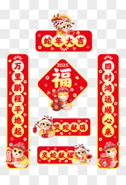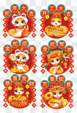新年扇形标题2025年大吉卡通蛇合成元素免抠元素六