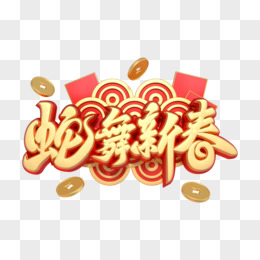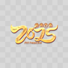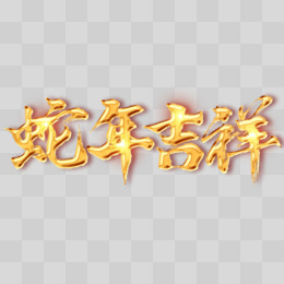 手绘蛇年2025字体免抠元素蛇年大吉鎏金字体