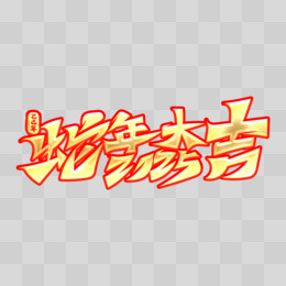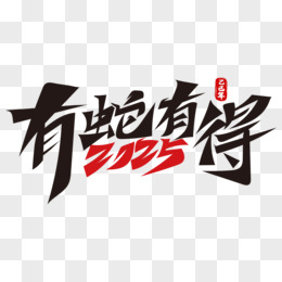 2025蛇年成语毛笔字设计蛇年大吉金字红色描边