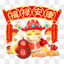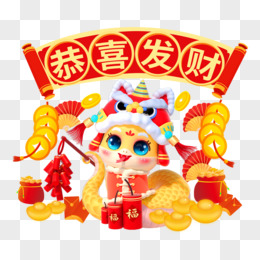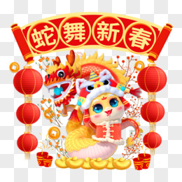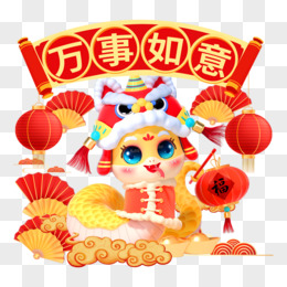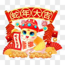 新年扇形标题2025年大吉卡通蛇合成元素免抠元素三
