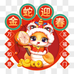 新年扇形标题2025年大吉卡通蛇合成元素免抠元素五