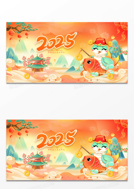 国潮时尚创意中国风2025年蛇年新年展板设计