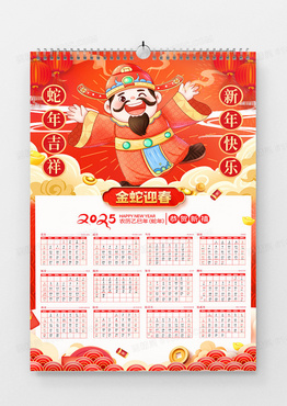 红色中国风2025年金蛇迎春蛇年日历宣传海报