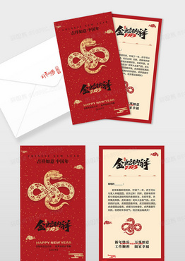 红色大气时尚2025年蛇年贺卡蛇年吉祥新年贺卡设计新年蛇年