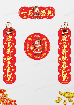 红色可爱风2026马年新年春节对联春联福字套图